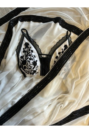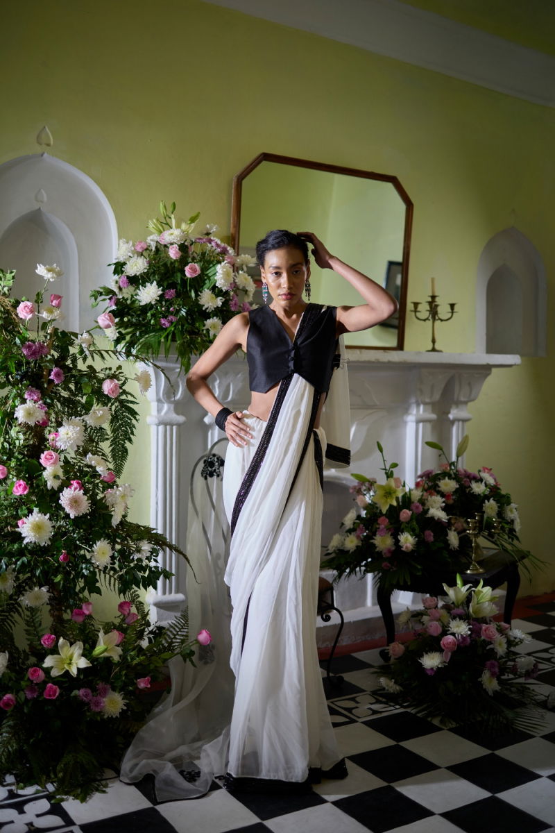 Classic details of hand embroidered border detail on silk georgette, this is a saree that can never go wrong. Easy to style and drape, this makes it to our bestsellers list