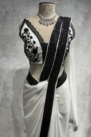 Product Description | The White Anamika georgette Saree is a blend of elegance and effortless charm, designed for those who appreciate timeless sophistication. Crafted from lightweight and breathable georgette fabric, this saree drapes beautifully, offering a graceful and flowy silhouette. The pristine white hue adds a touch of purity and refinement, making it a perfect choice for weddings, festive occasions, and formal gatherings. Whether styled with intricate embroidery for a regal appeal or kept minimal for a contemporary look, the White Anamika Saree is a versatile and luxurious addition to any wardrobe. |
